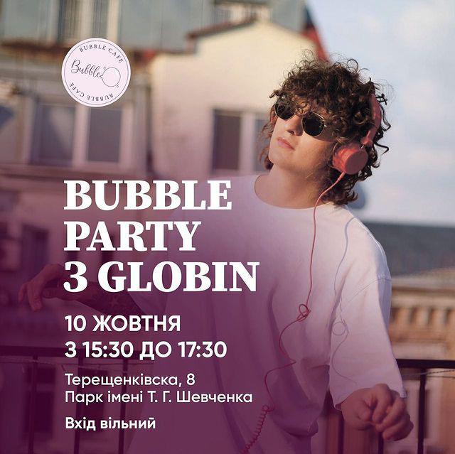 Globin зіграє свій сет вже в суботу з 15:30 до 17:30 на нашій Bubble party. Vol 1 у парку Шевченка. Приходьте слухати фантастичного діджея й ловити останнє осіннє тепло в улюбленому парку Києва!